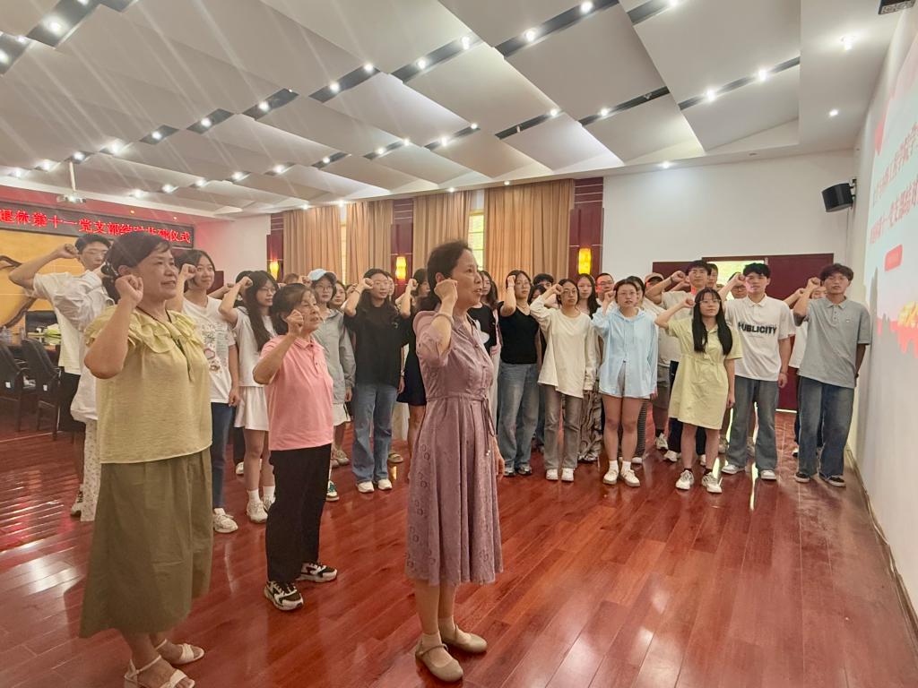 结对仪式后,在陈燕莉书记领誓下,全体党员整齐列队,高举右拳,重温入党誓词,坚定理想信念。同时,在鲜红党旗见证下,三位退休老党员依次为上半年入党的学生党员颁发“政治生日”贺卡,勉励他们要牢记党员身份,永葆先进本色,传承党的优良传统和精神。